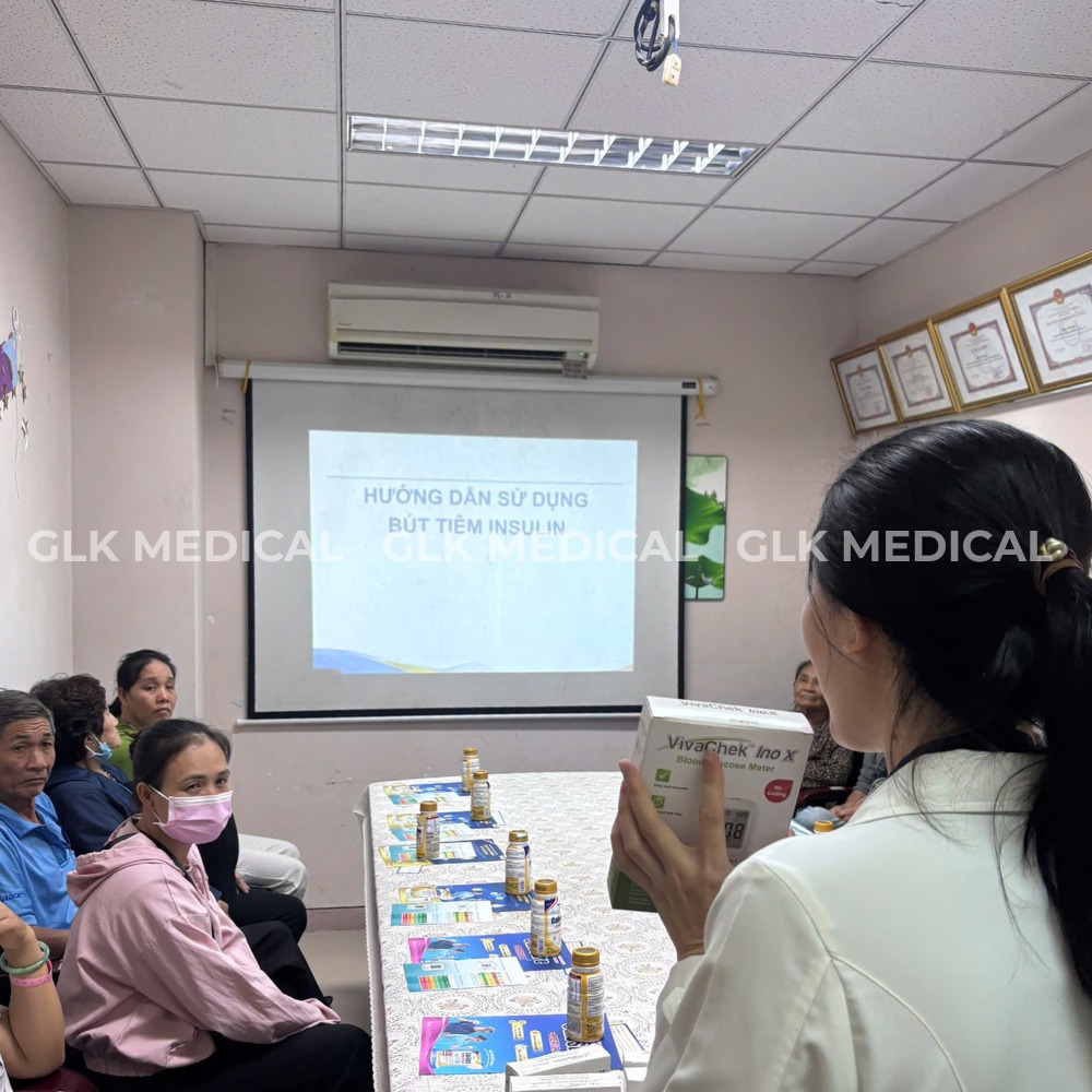 Trong chương trình, các bác sĩ chuyên khoa đã hướng dẫn bệnh nhân theo dõi và kiểm soát đường huyết tại nhà, đồng thời thực hành sử dụng máy đo đường huyết cao cấp VivaChek – thiết bị hiện đại giúp người bệnh tự kiểm tra chỉ số đường huyết nhanh chóng, chính xác và tiện lợi.
